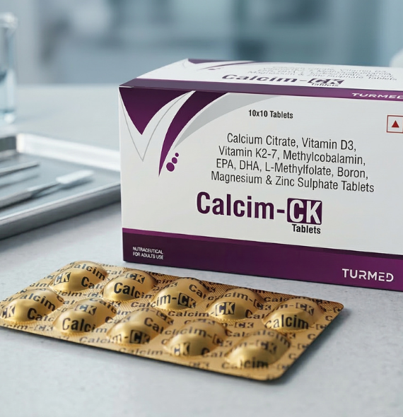 Calcim-CK Tablets are a comprehensive bone health supplement formulated with Calcium Citrate, Vitamin D3, Vitamin K2-7, and essential minerals that help improve bone density and overall skeletal strength.