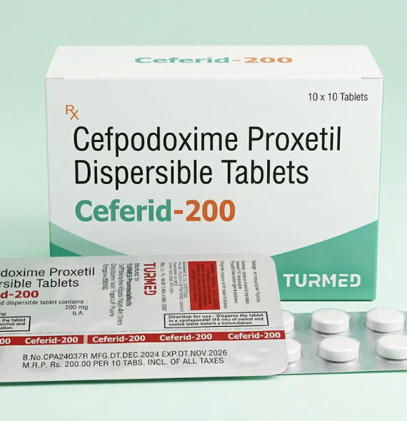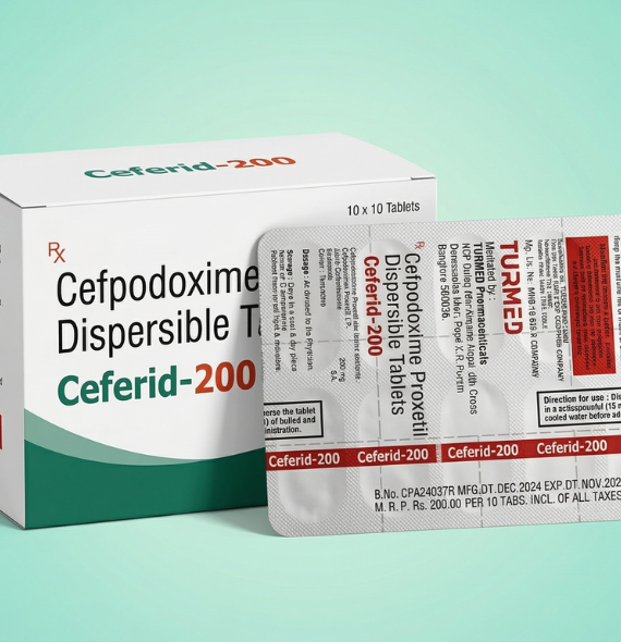 Ceferid-200 contains Cefpodoxime Proxetil, a third-generation cephalosporin antibiotic used to treat a wide range of bacterial infections. It works by stopping the growth of bacteria responsible for infections in the respiratory tract, urinary tract, skin and soft tissues. The dispersible tablet formulation makes it easier to administer and absorb. It is commonly prescribed for infections such as bronchitis, tonsillitis, sinusitis and urinary tract infections.