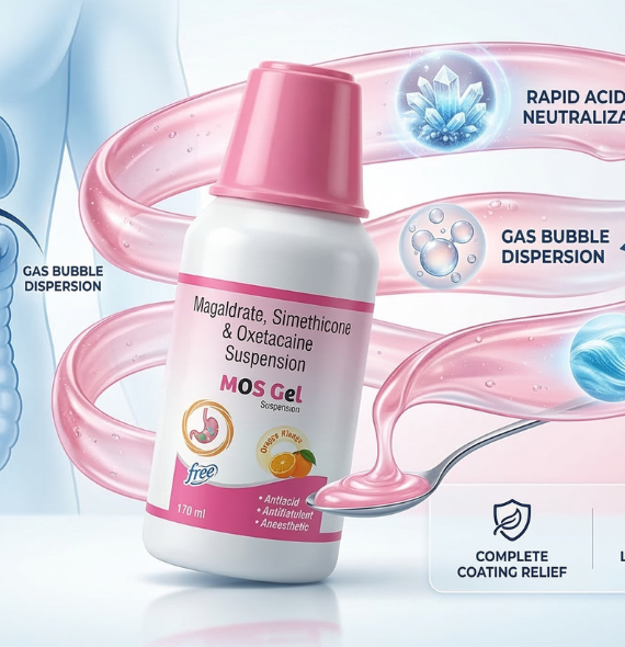 MOS Gel is commonly prescribed for conditions such as acidity, gastritis, bloating, indigestion, and acid reflux, providing fast and long-lasting relief.