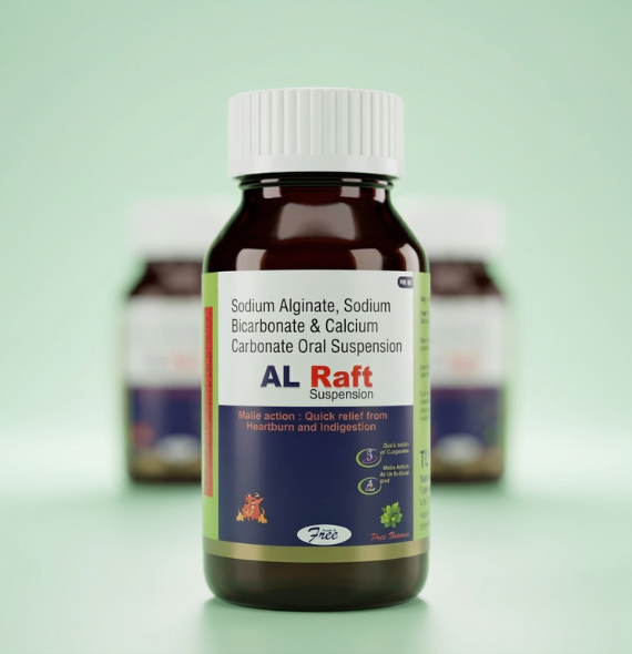 AL Raft Suspension is an antacid formulation used for the relief of acidity, heartburn and gastroesophageal reflux symptoms. The combination of Sodium Alginate, Sodium Bicarbonate and Calcium Carbonate forms a protective barrier in the stomach that helps prevent acid reflux into the food pipe. It works quickly to neutralize excess stomach acid and provides soothing relief from burning sensation and indigestion. It is commonly used for acid reflux, gastric irritation and digestive discomfort.